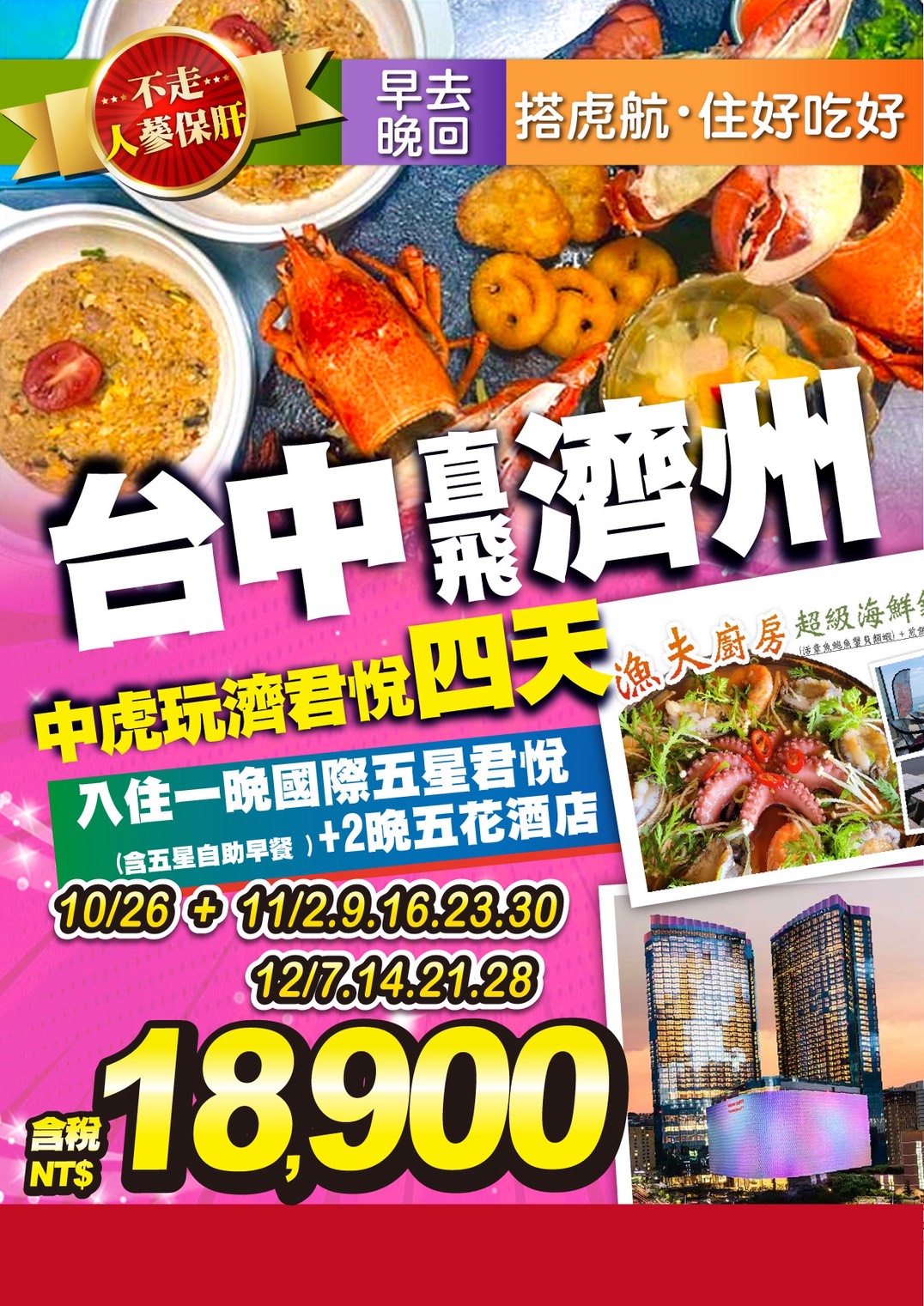 RAMADA CITY(原特二五花) 或 濟州咸德Ramada Hotel 或 HOTEL THE ONE 或 Best Western Hotel Jeju 或 Hotel Regent Marine 或同級
