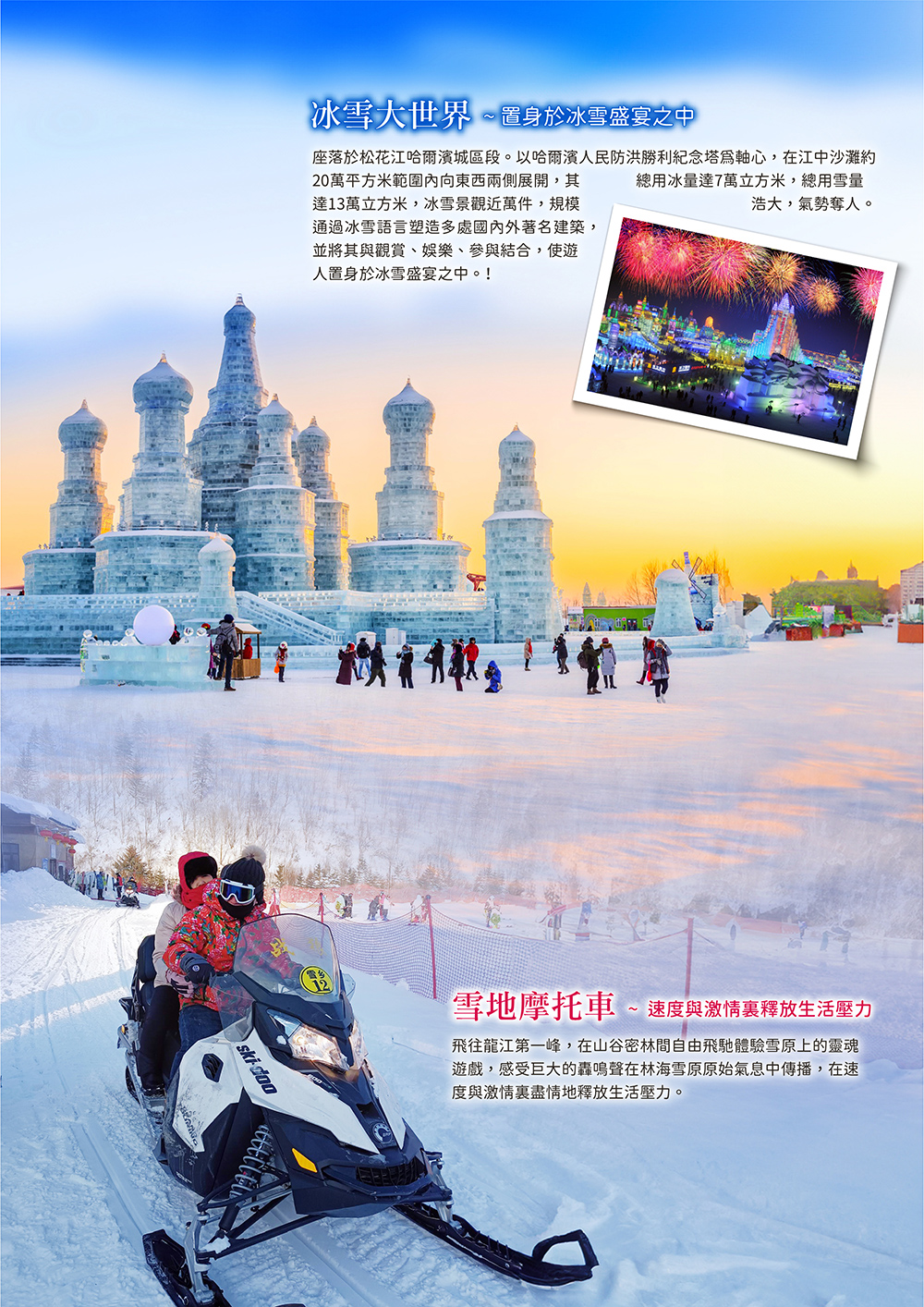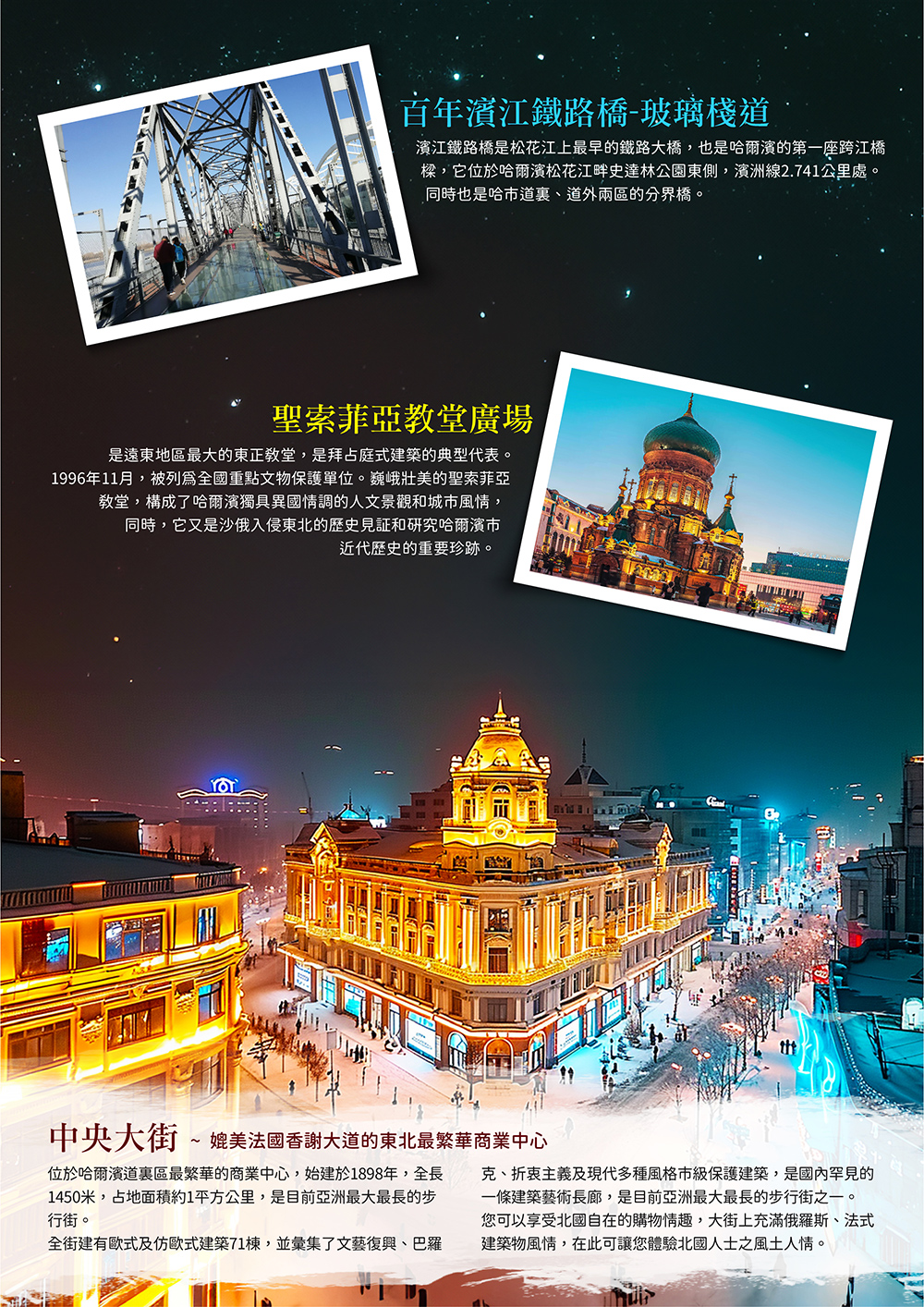 ※【哈爾濱】冰雪大世界、網紅打卡景點鑽石海、聖索菲亞教堂廣場、百年濱州鐵路橋、防洪紀念塔、中央大街