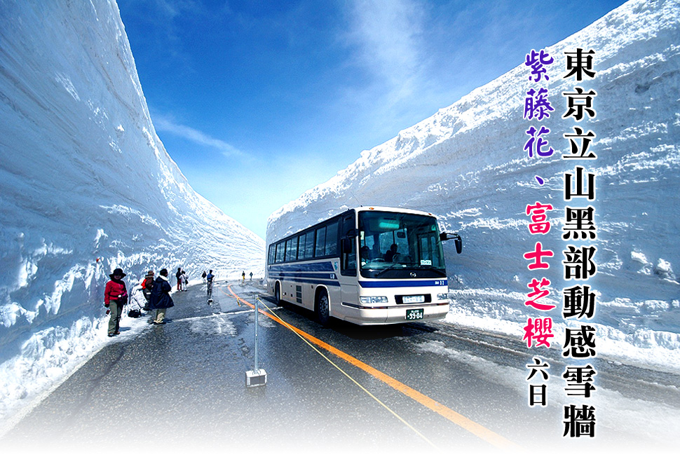 專車前往「中部山岳國家公國」的入囗玄關:立山車站,轉乘6種登山交通設施,最高點到達海拔2,450公尺的【室堂】,沿途高山四季的綺麗景觀,以及工程建設的鬼斧神工之妙,保證令您嘆為觀止。